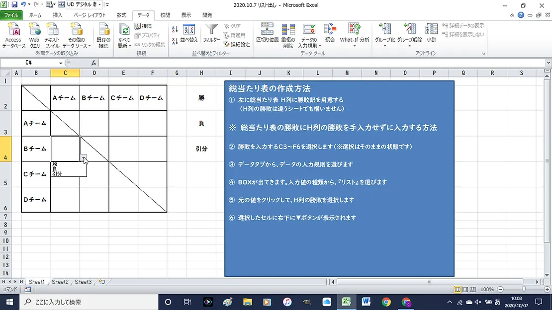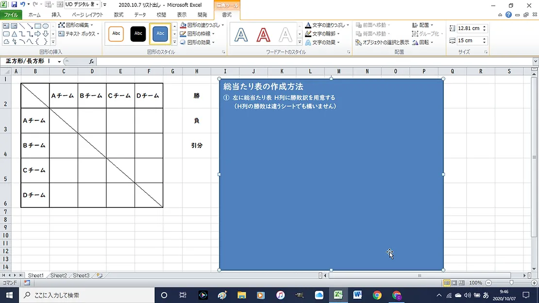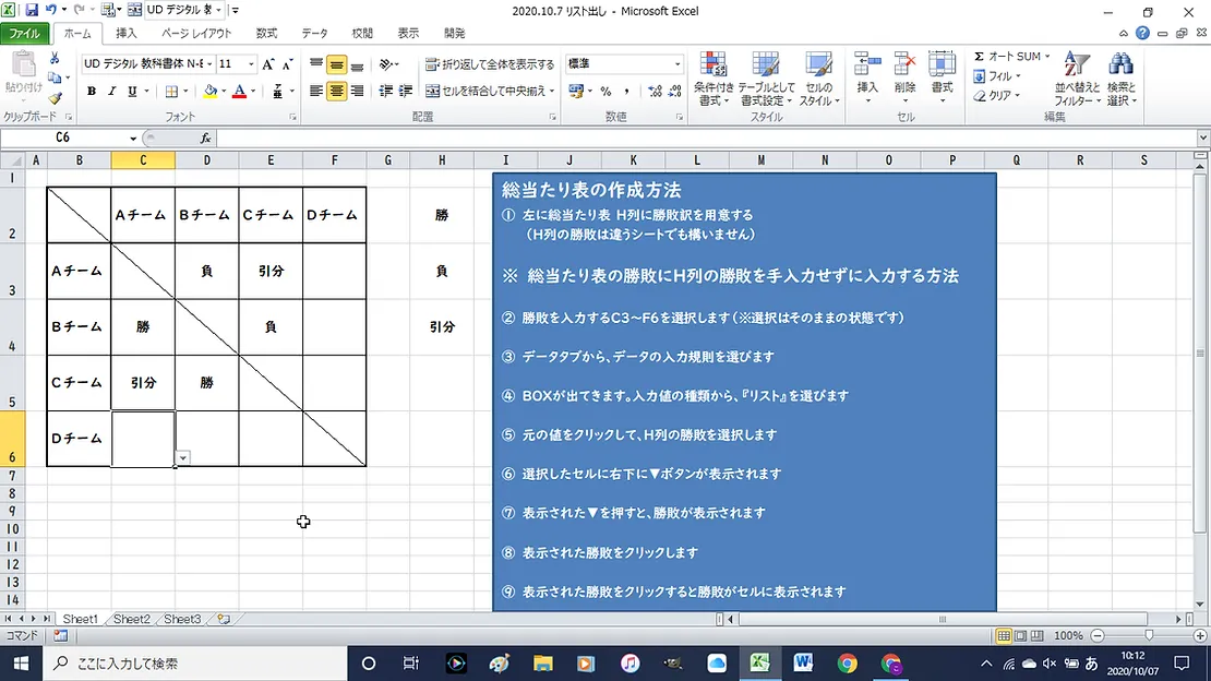 今回は、総当たり表の勝敗を入力せずに、クリックだけで勝敗をつけられる方法をお伝えします