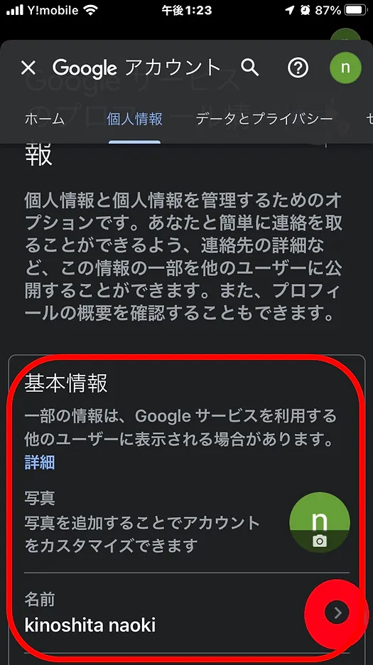 以上で、アプリ版のGoogleアカウント名の変更の手順でした。